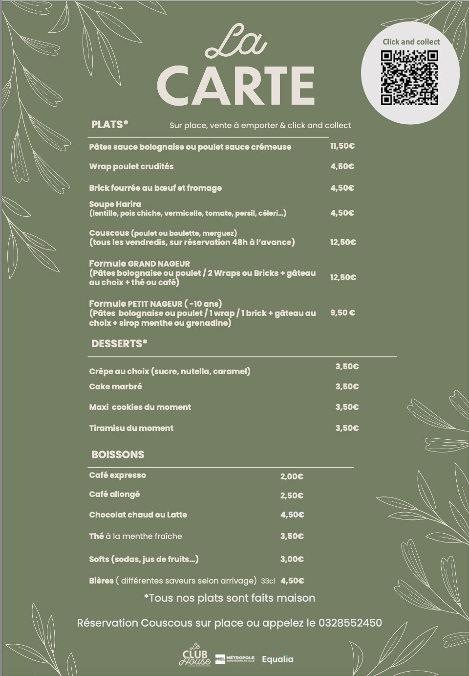 Que vous cherchiez un restaurant à la piscine des Weppes, un snack à Herlies ou simplement un bon moment autour d’un plat fait maison, le Club House vous attend avec convivialité et simplicité. À très vite autour d’un café ou d’un bon petit plat !